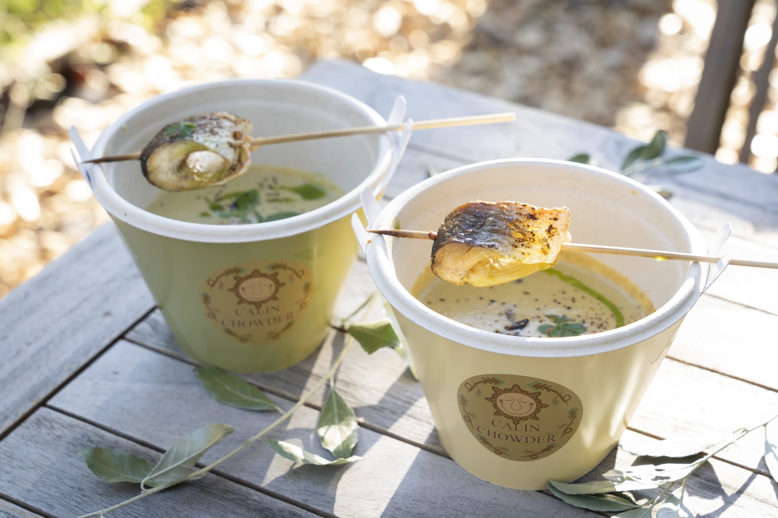 その後地元の食材の生産地に足を運んで得たインスピレーションに、フランスの食材や感覚を融合し、試作や意見交換を何度も繰り返してスペシャルクラムチャウダーが生み出されました。
